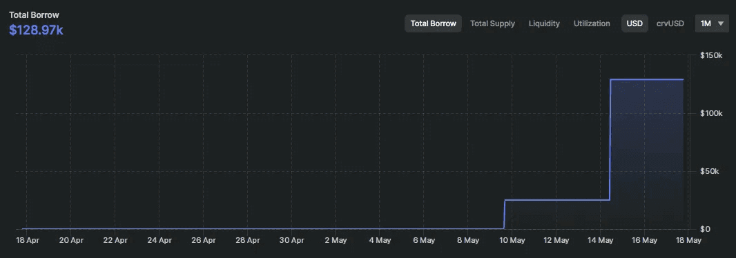 Additional information can be found on the specific market page, revealing that one user has borrowed ~129k crvUSD over several days.
