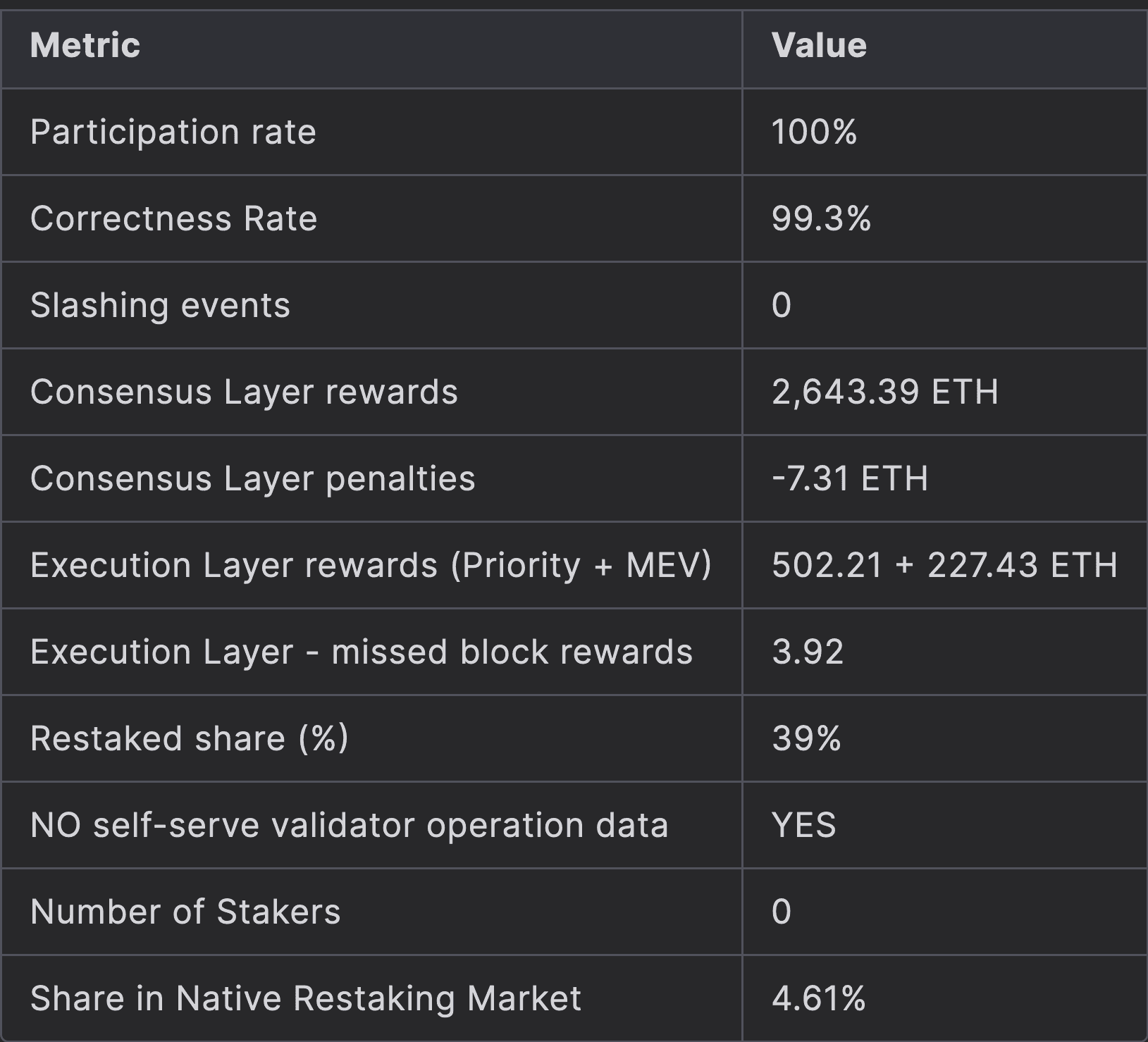 On the positive side, P2P.org's performance metrics, including their top 35% Rated ranking and high APR for their staking pool, indicate strong operational efficiency. The organization's significant market share in Native Restaking ETH further underscores its prominence.