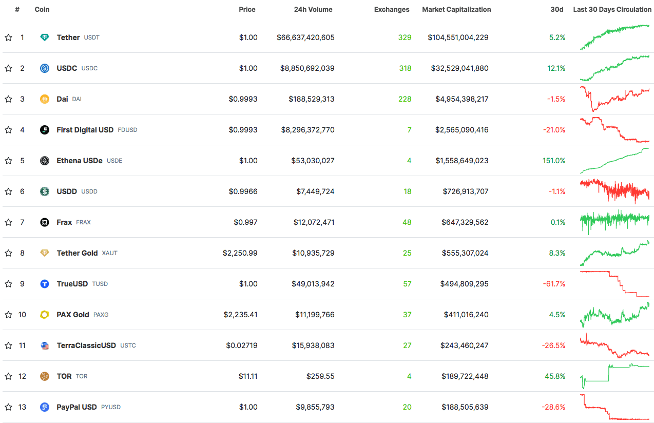 Source: Coingecko - Stablecoins | Date: 1/1/2024