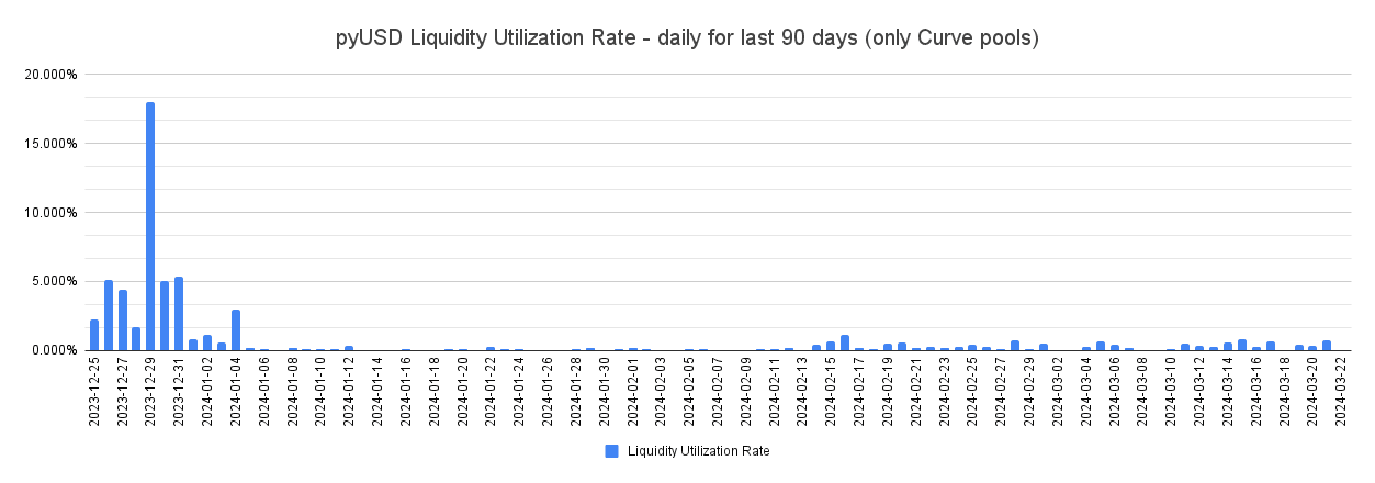 It can be assumed that PYUSD, at its current level of adoption and pool robustness, may behave similarly as a pegkeeper. This may make it more suitable to be considered a secondary pegkeeper, at least until the stablecoin has had time to mature.
