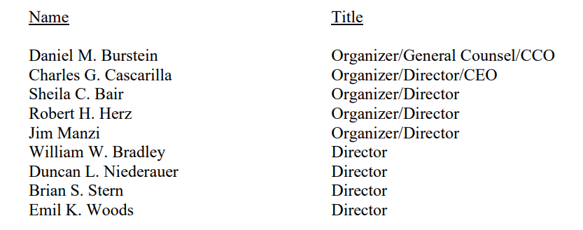The OCC did not object to the persons serving as executive officers, directors, and/or organizers as proposed in the application. Background checks and other reviews for the executive officers and directors were still in process at that time.