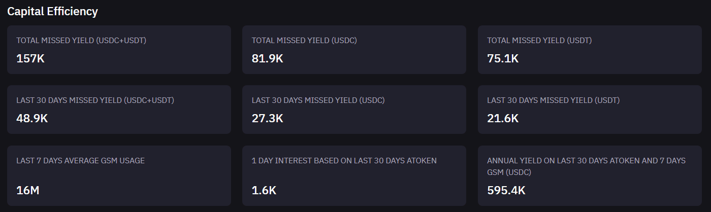 As @tokenlogic_karpatkey has summarized it, the current opportunity cost for USDC that could be instead supplied as a collateral on Aave Mainnet market currently is 81.9k USDC.