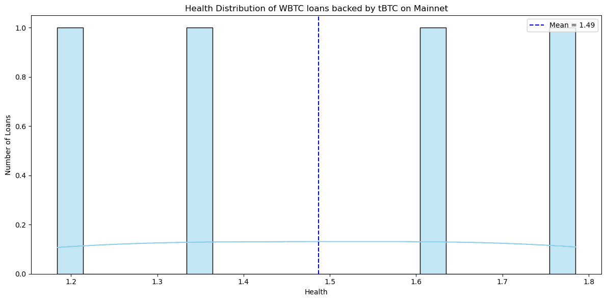 Moreover, while there are currently only 4 wallets that borrow WBTC using tBTC, the mean health ratio of these loans is 1.49. It indicates higher risk-aversion among the borrowers; therefore, we can expect a lower actual leverage even if this liquid e-Mode is introduced.