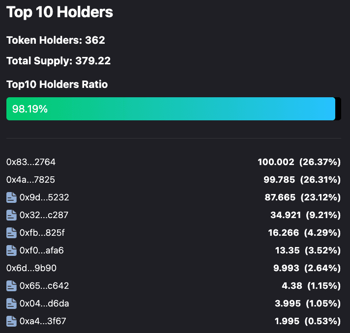 This asset is heavily concentrated at this time, with >80% of this asset being held by four addresses.