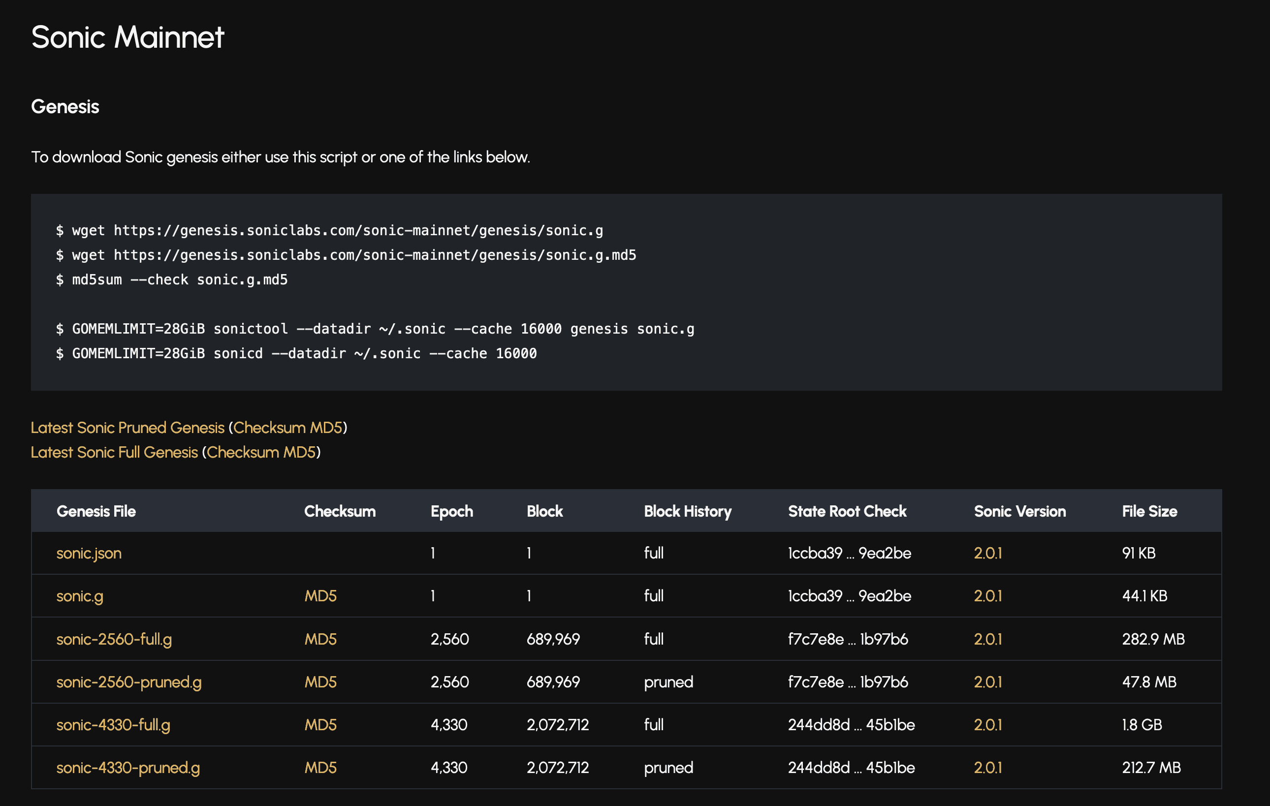 Source: Sonic Genesis Node Details, January 8th, 2025