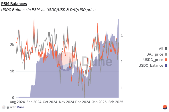 Reserves vs DAI & USDC Market Prices.Source: Dune, February 6th, 2025