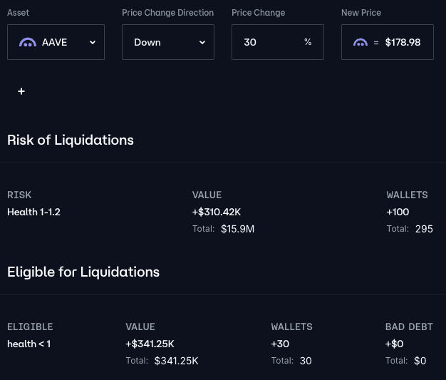 Simulation of 30% drawdown at current LT (70%), Chaos Labs, February 11th, 2025