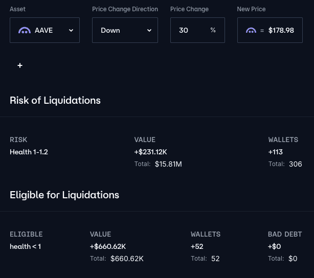Below we show a simulation of a 30% AAVE drawdown under current (70%) and proposed (75%) LT.