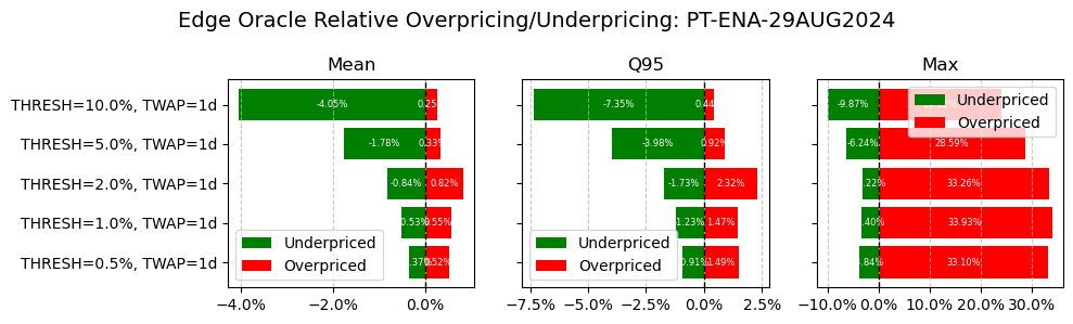 Given the less speculative nature of the initial pricing for PT-ENA, the real differences in overpricing between the models can be discerned with greater clarity. The differences between EO and ELB methods are much more critical. It can be observed that the overpricing with the EO model would have reached 19-34%, while the MaxRate choice for ELB constrains the overpricing within a 3% threshold:
