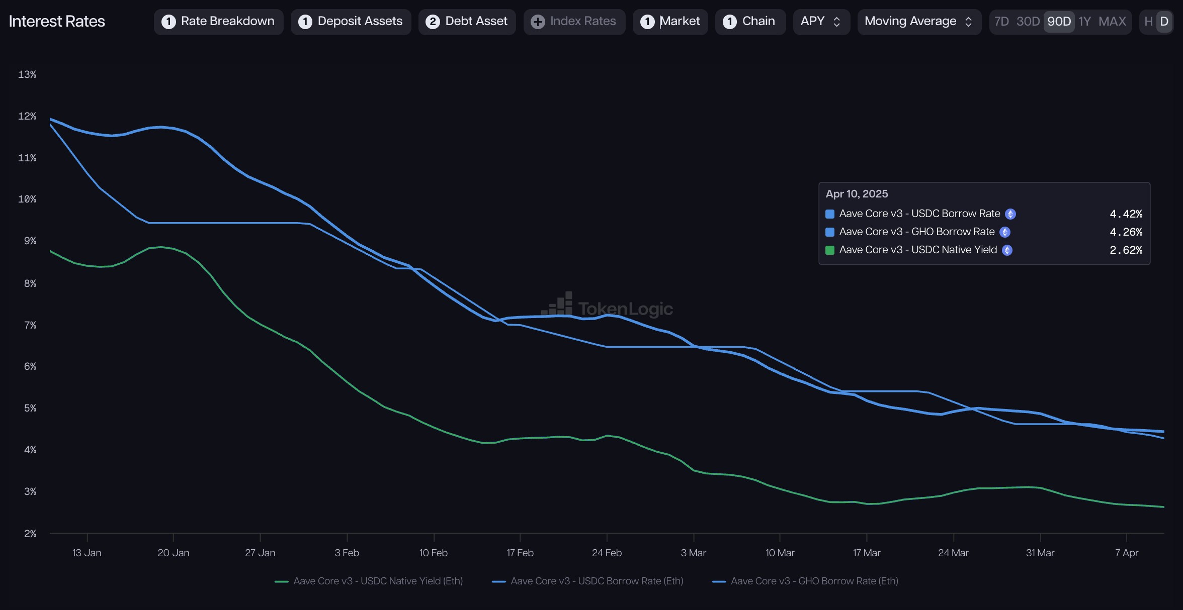 Source: TokenLogic Aave Dashboard, April 10th, 2025