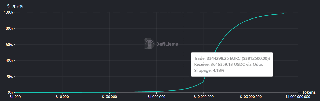 Users can swap EURC worth up to $4M (3.5M EURC) for USDC in a transaction within 4.5% slippage.