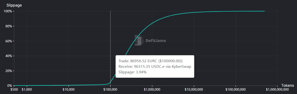 Users can swap EURC worth up to $100K (87K EURC) for USDC within a slippage of 5%.