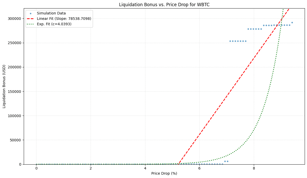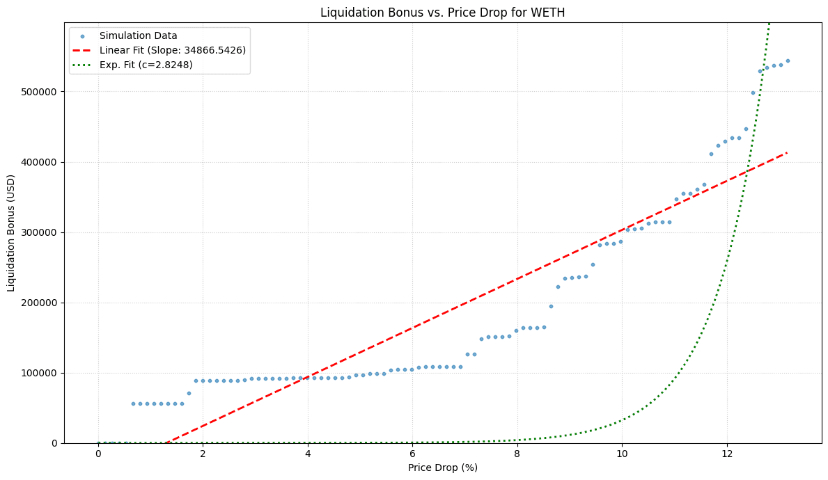 We recommend prioritizing assets with high lin_res and exp_res scores for further SVR development, as these assets exhibit both strong liquidation sensitivity (with substantial liquidations triggered per percentage price drop) and high historical volatility. Each asset’s VaR99 values (called shock) provide valuable context for understanding its potential to generate liquidation value.