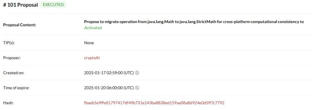 A recent upgrade to Tron 4.8.0, announced in April 2025, introduced important changes to the network, including enhancing Consensus Layer verification (prevents malicious blocks from being generated during maintenance), upgrading Event Service V2.0 (for faster processes and historical queries, improving node performance (e.g, faster block synchronization), deprecation of the SELFDESTRUCT in TVM, and Ethereum compatibility upgrade among others.