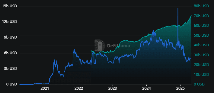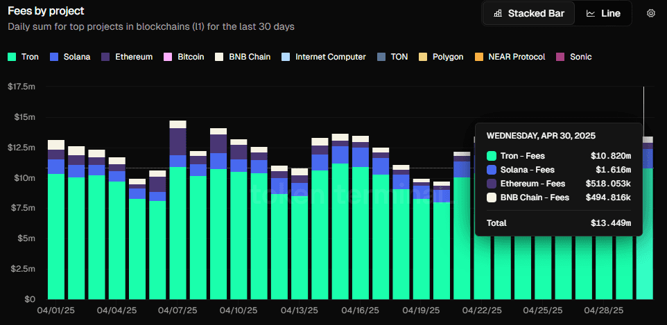 Source: Token Terminal, Daily Fees, May 1st, 2025