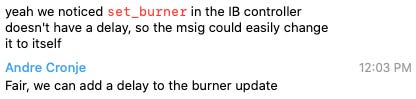 able to set the burner address which collects earned interest
