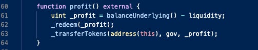Other than depositing into Iron Bank, the profit function is the only way to transfer tokens out of the contract. The recipient is gov.