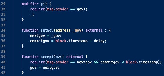 g allows only the gov account to mint. gov can be set by the Keep3r Multisig with a 1-day delay.