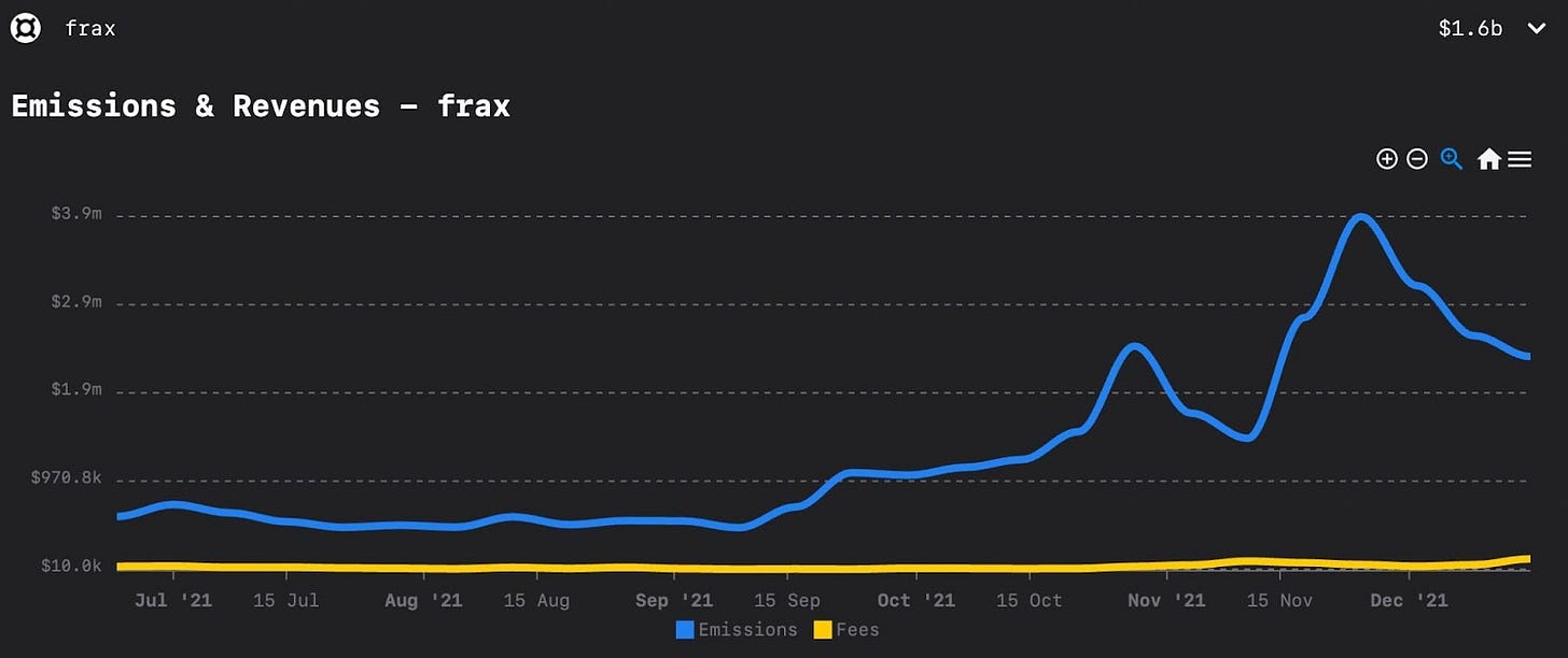 FRAX is loyal to Curve and would love to increase pools and volume/fees. But as for now, we can see that pool emission has been outweighing the fees collected. This data would suggest FRAX is “gauge hacking” they are able to profit because the bribe market isn’t efficient yet. They are selling CRV emissions for CVX this should be clear to all voters, with the sidenote that FRAX can be a good long-term partner and has future potential to bring in more volume/fees and different pools.