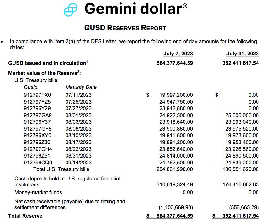 Source: Gemini Trust Center | Date: 7/30/2023 and 8/16/2023
