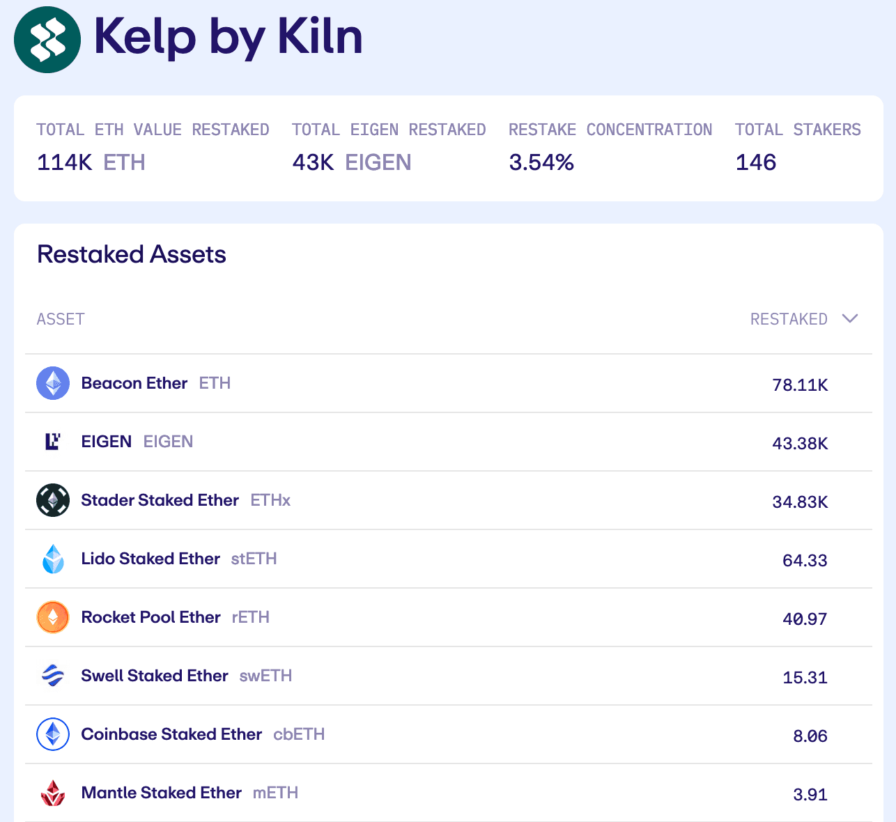 Source: Kiln EigenLayer operator dashboard (July 19th, 2024)