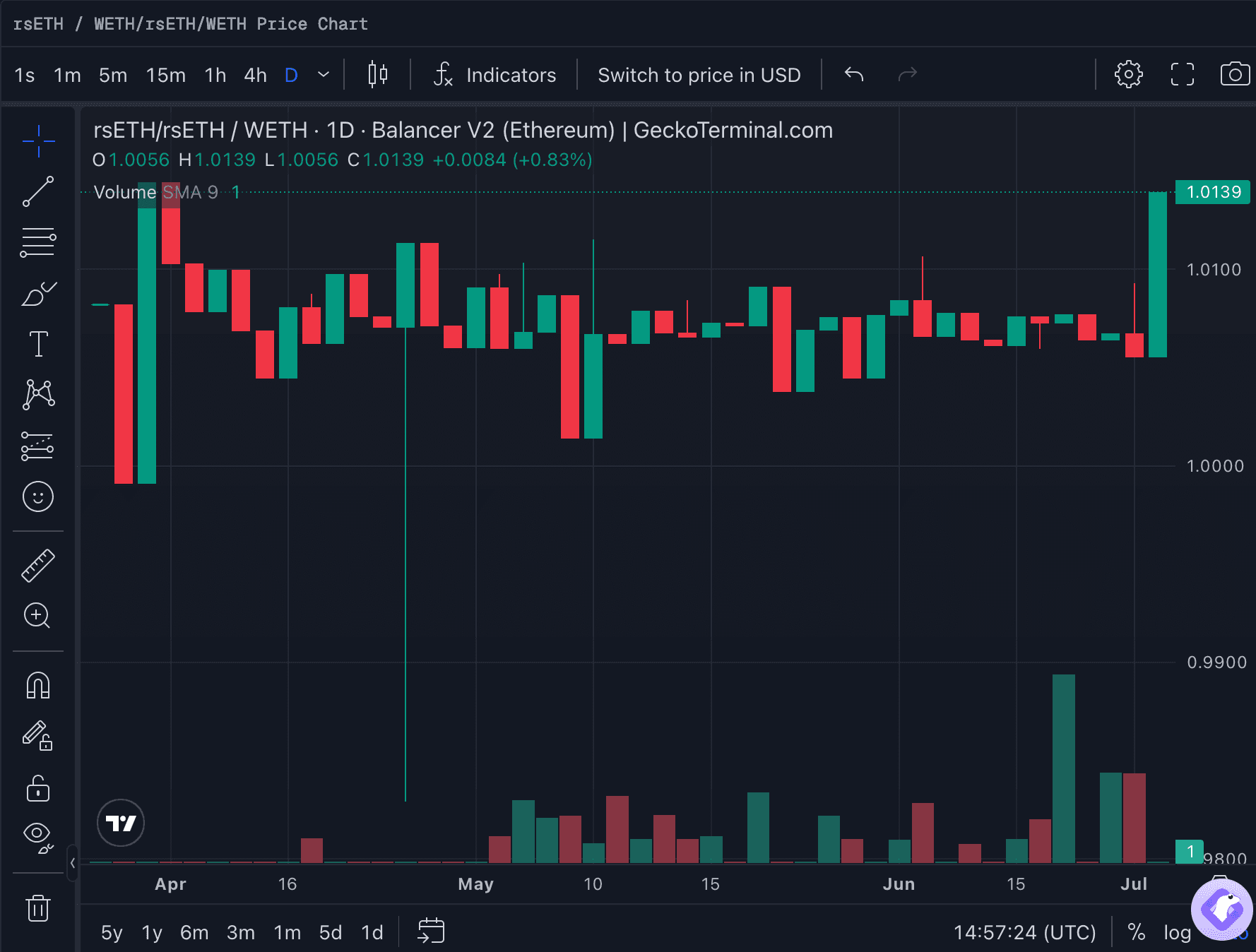 We rank rsETH good in volatility because the quality of its peg has increased consistently. The only depeg event was short-lived and limited in strength.
