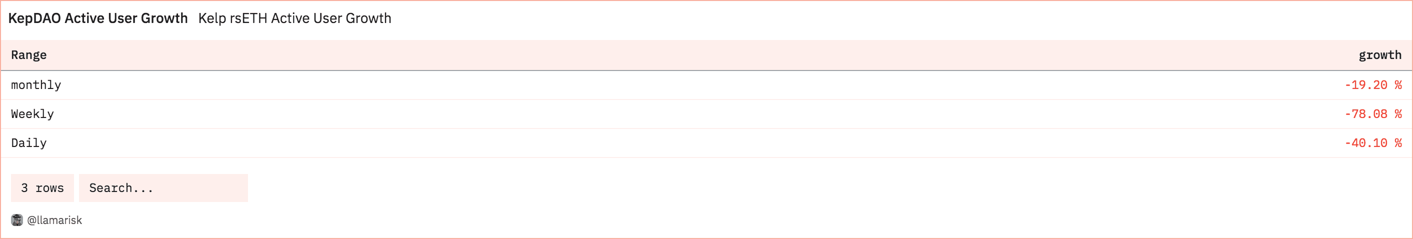 There is no governance forum nor Snapshot.org page for KelpDAO. Direct communication with the KelpDAO team is possible via a Telegram channel with ~8,800 members, as well as through their Discord server. A quick look at the Discord server shows two moderators and eight private members (KelpDAO team). Discussions are mostly limited to announcements and answering questions from KelpDAO users by the team. We conclude that protocol participation from users is limited, which is echoed by the lack of a DAO and governance token.