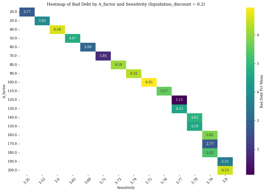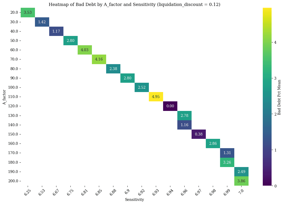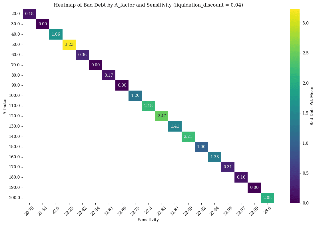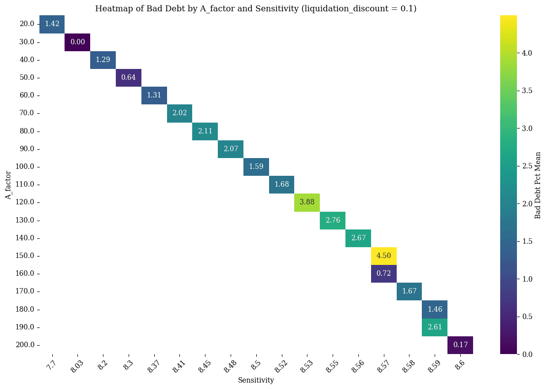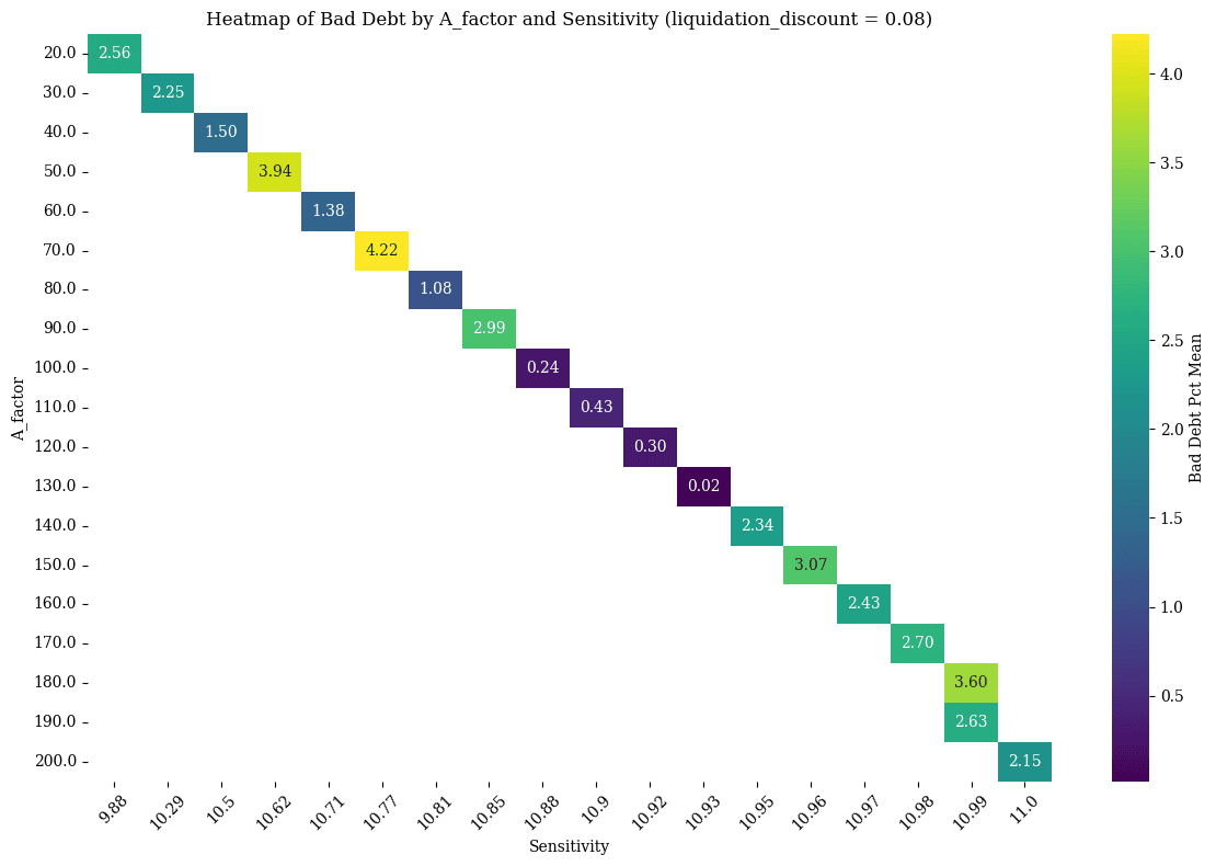 #Liquidation Discount vs. Sensitivity (Fixed A Factor): Bad Debt