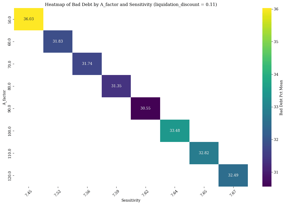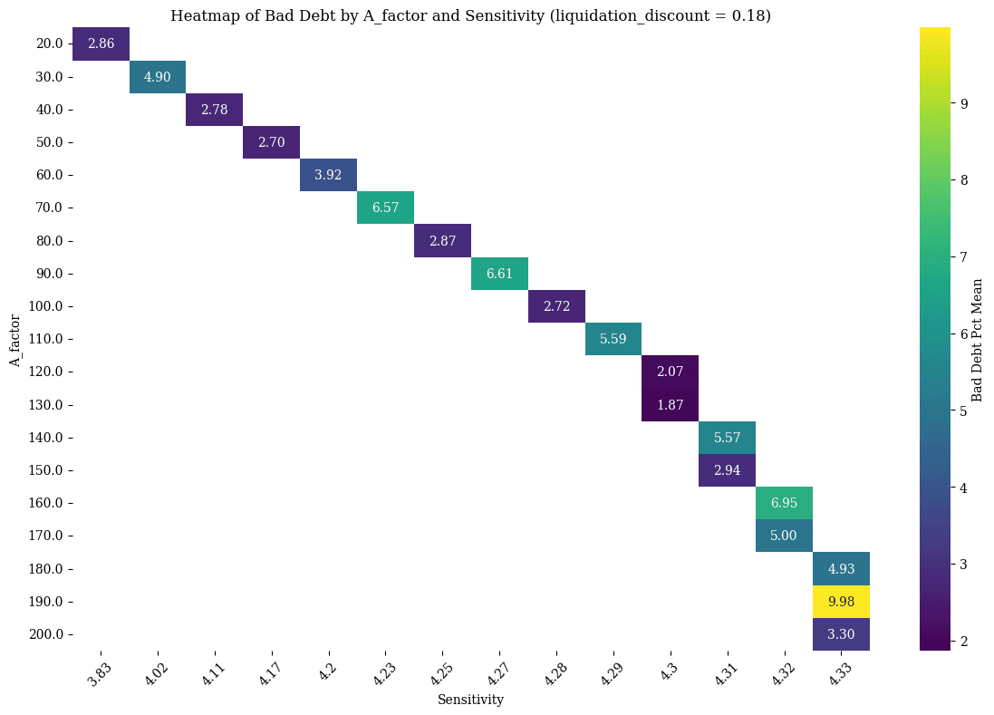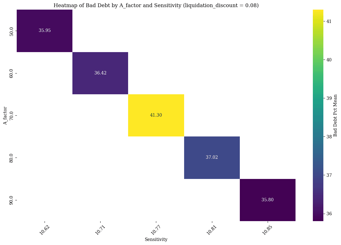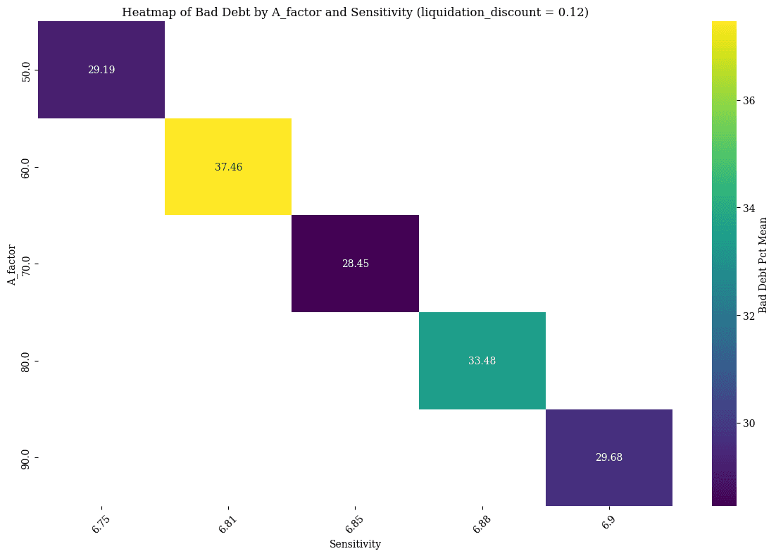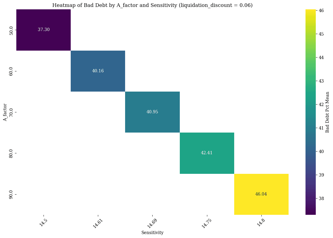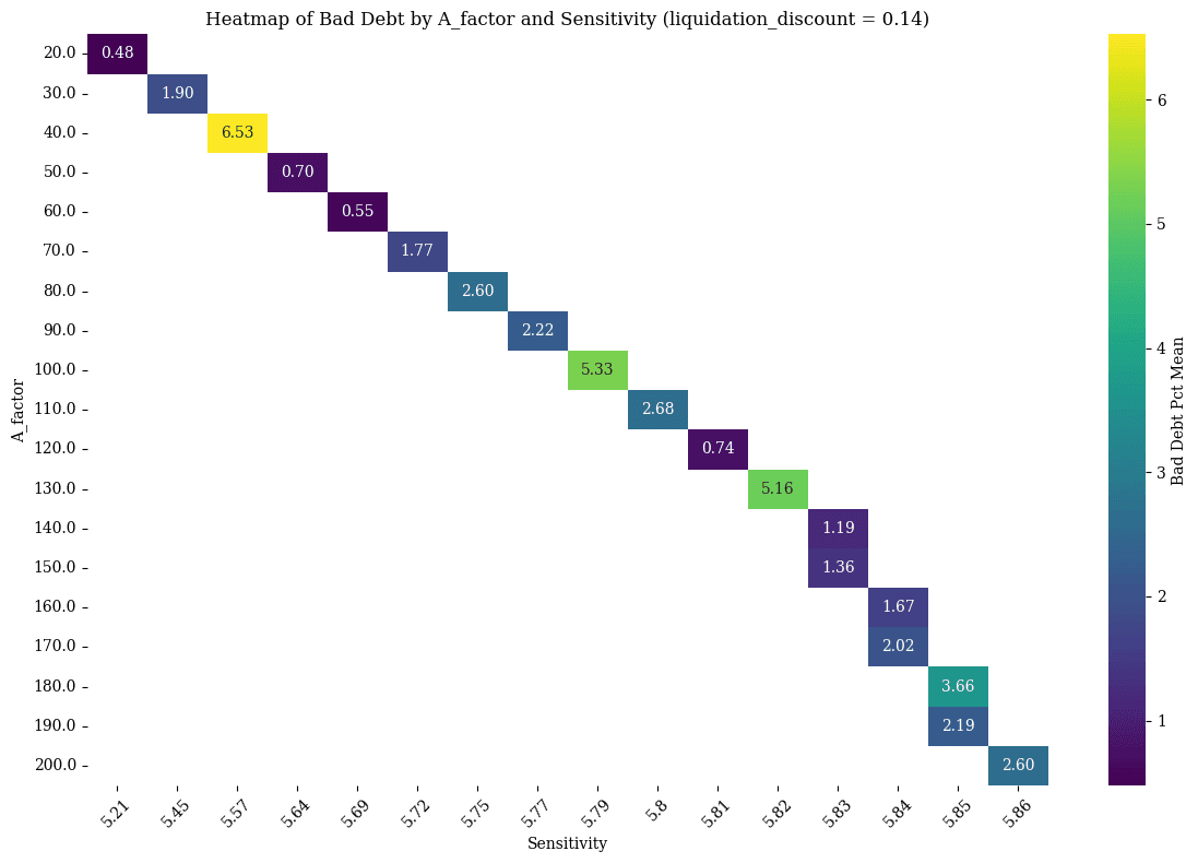 #Liquidation Discount vs. Sensitivity (Fixed A Factor): Bad Debt