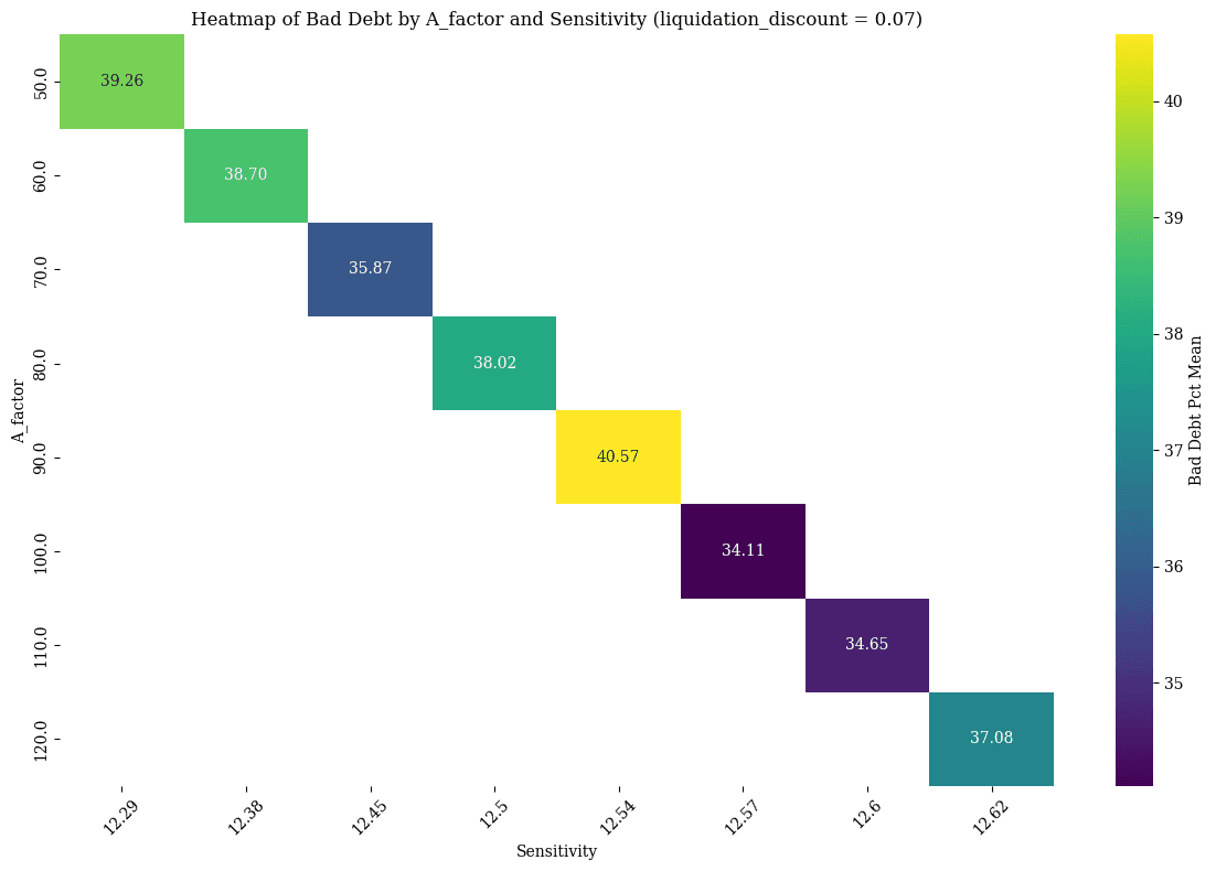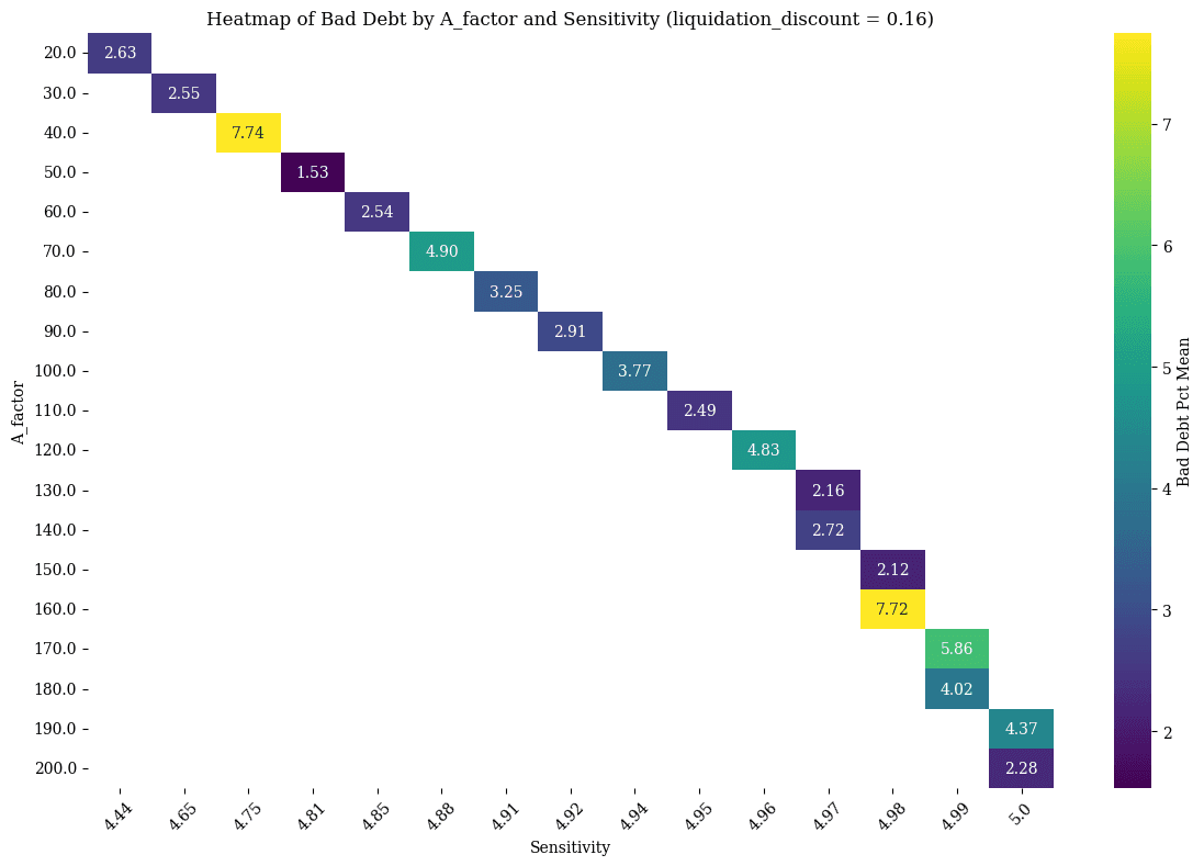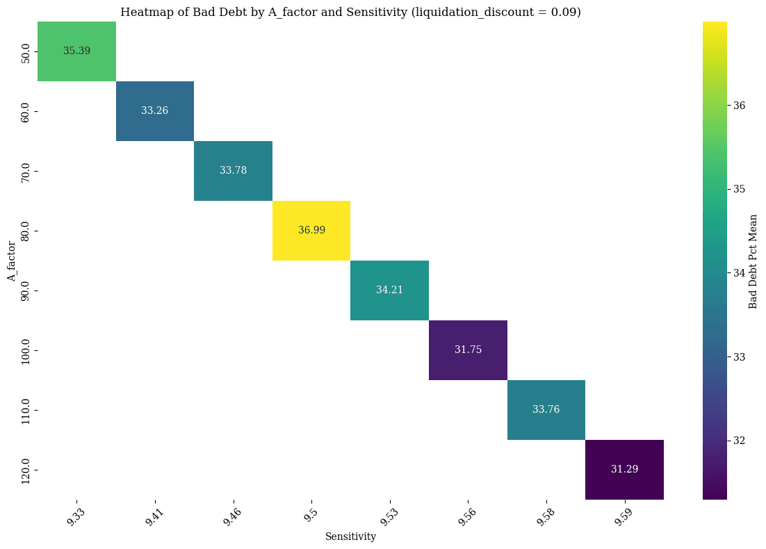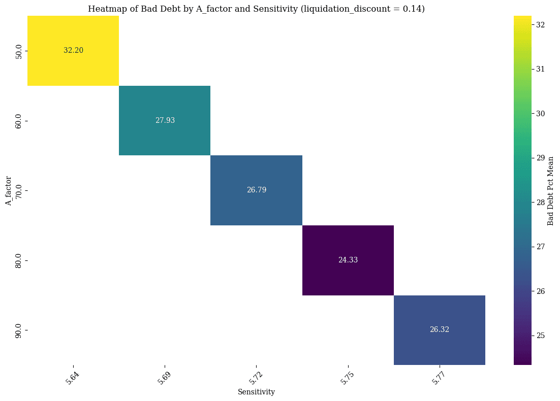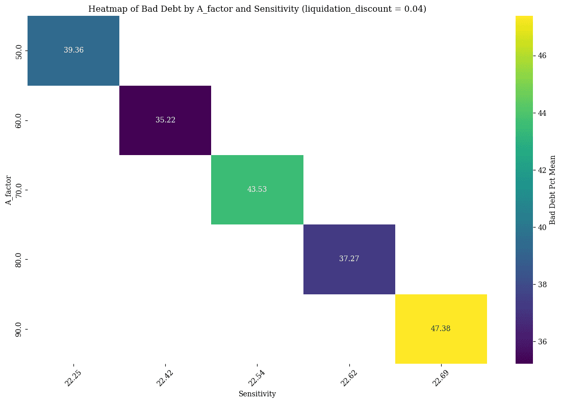#Liquidation Discount vs. Sensitivity (Fixed A Factor): Bad Debt