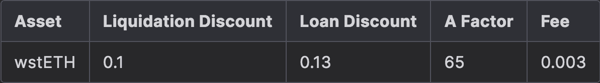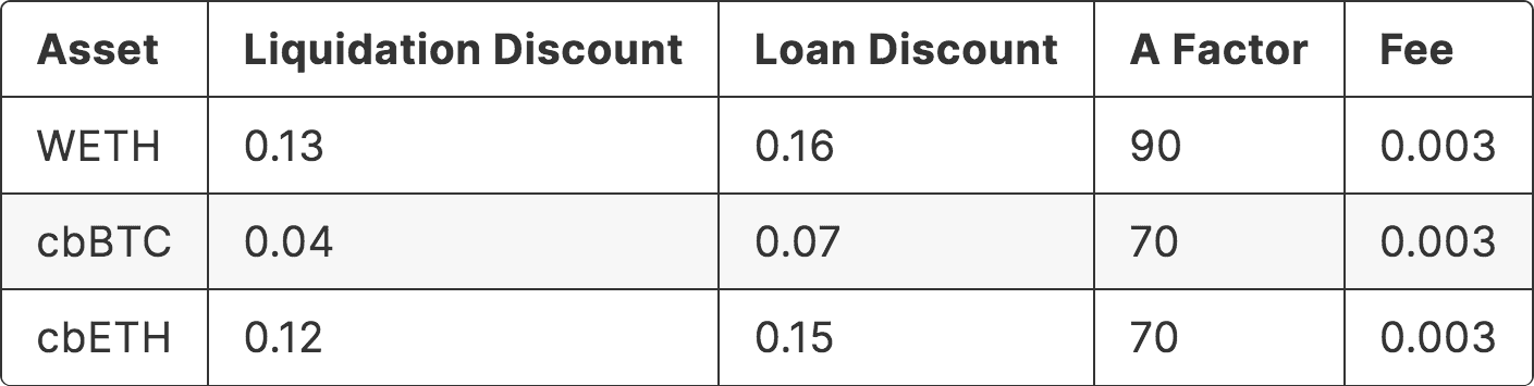 Our tool found a suitable range of 0.09-0.1 liquidation discount and 60-70 A factor. An A factor of 70 and fee of 0.002-0.003 was found to be a suitable range.