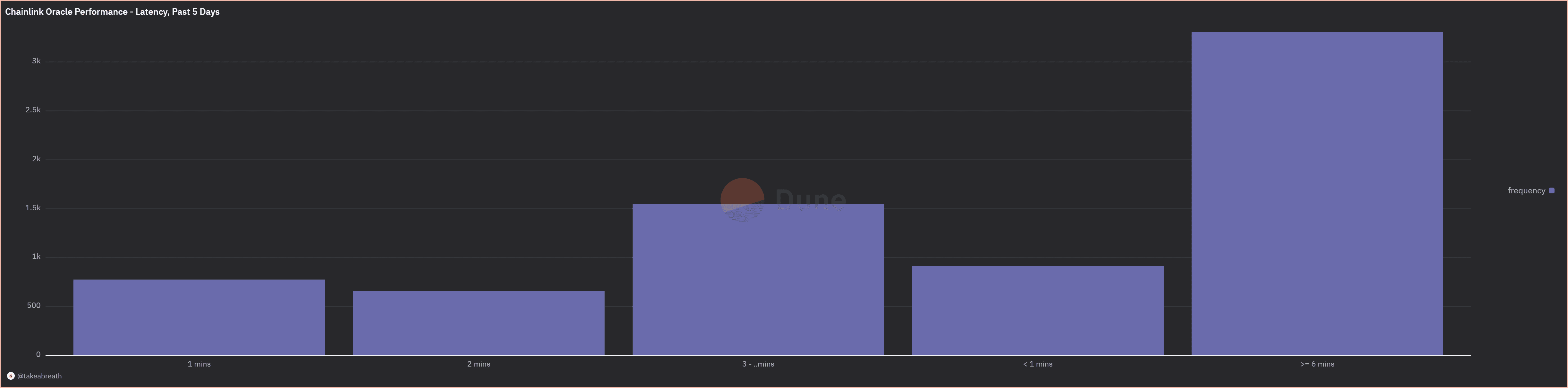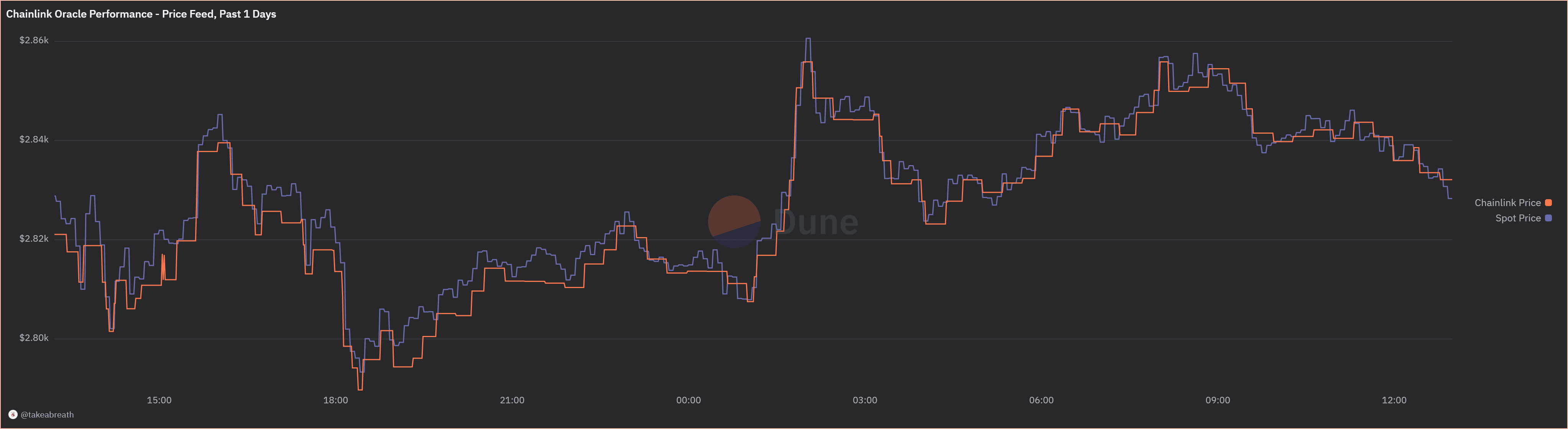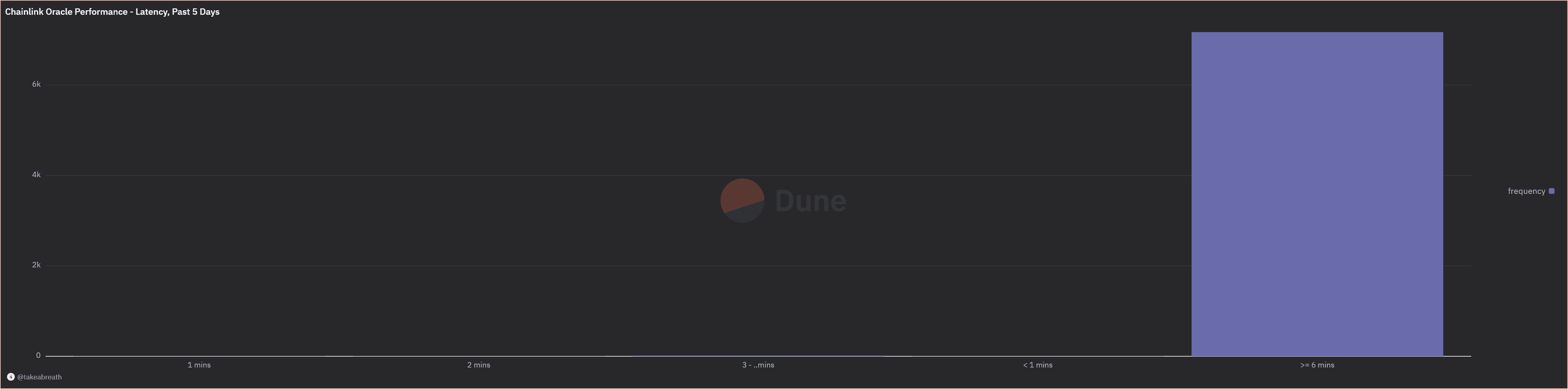 This section presents an analysis of Chainlink Oracles intended for use on DeFi.Money's Base deployment. The quality of the oracles is critical to the overall architecture of the platform. These oracles ensure that borrowers can take out loans accurately priced against their collateral, arbitrageurs can efficiently execute soft-liquidations, and liquidators can perform hard-liquidations effectively.
