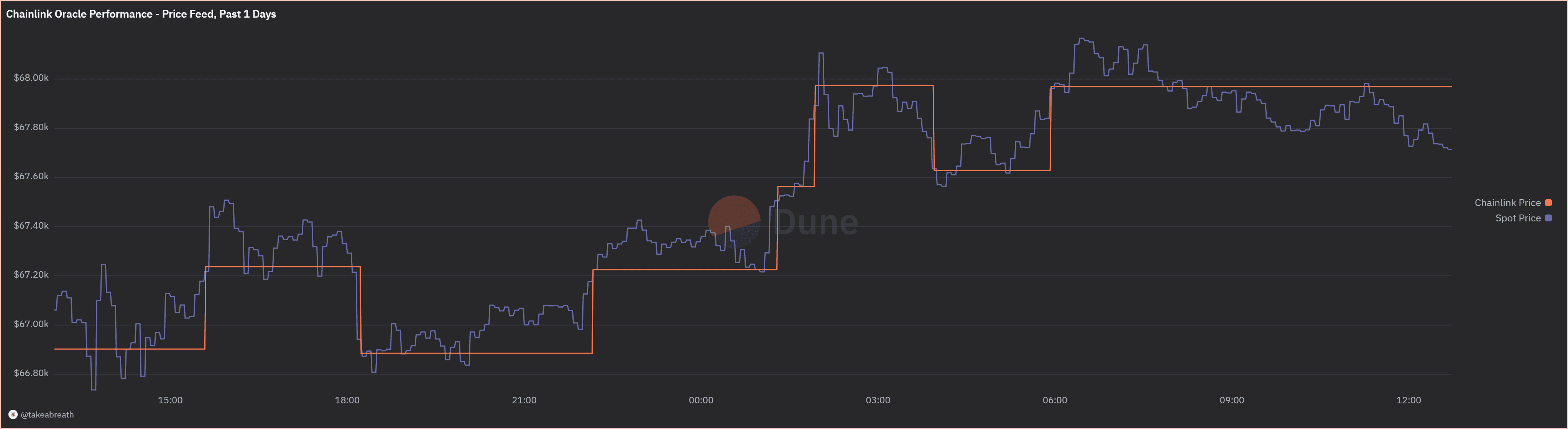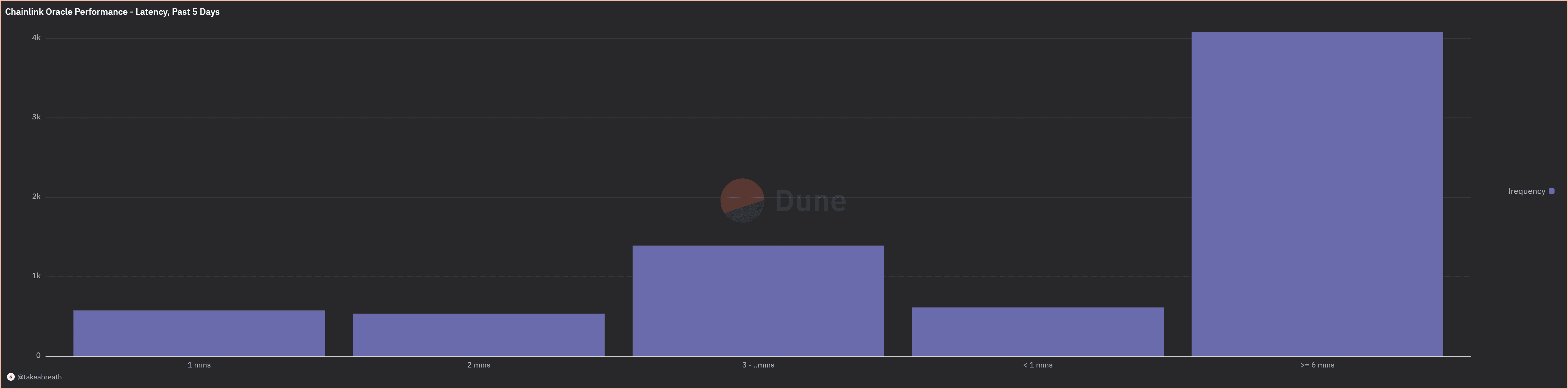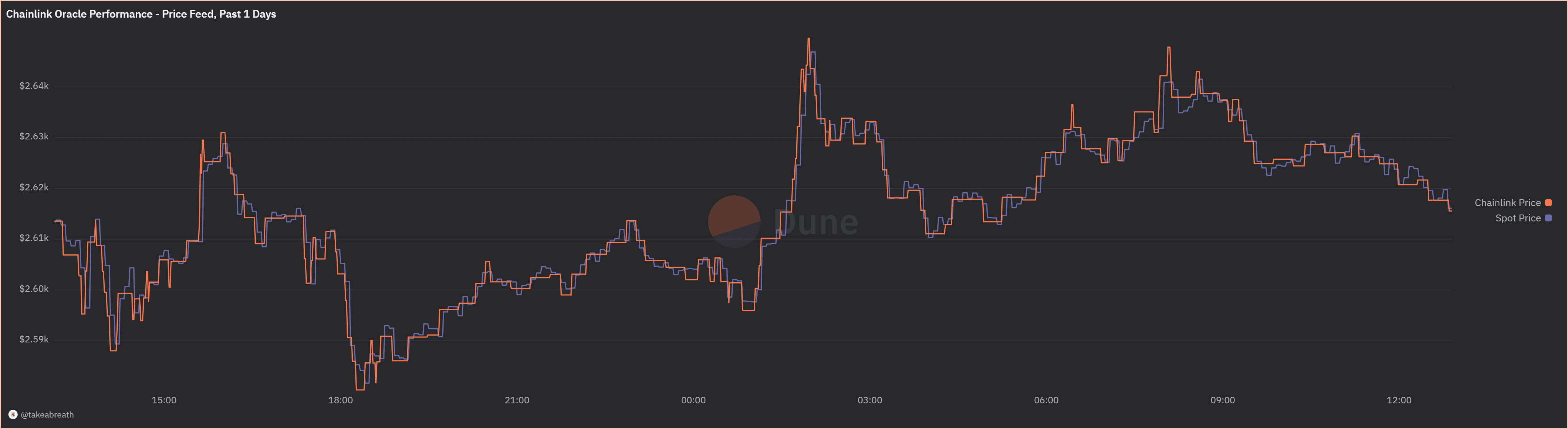 This section presents an analysis of Chainlink Oracles intended for use on DeFi.Money's Base deployment. The quality of the oracles is critical to the overall architecture of the platform. These oracles ensure that borrowers can take out loans accurately priced against their collateral, arbitrageurs can efficiently execute soft-liquidations, and liquidators can perform hard-liquidations effectively.