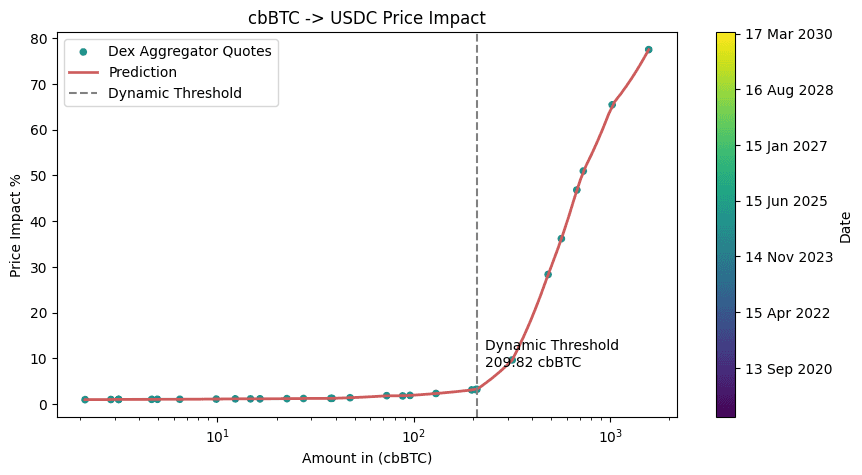 We solely relied on USDC quotes for fitting the isotonic regressor and defining the debt ceiling given the overwhelming concentration of USDC on Base relative to other stables.