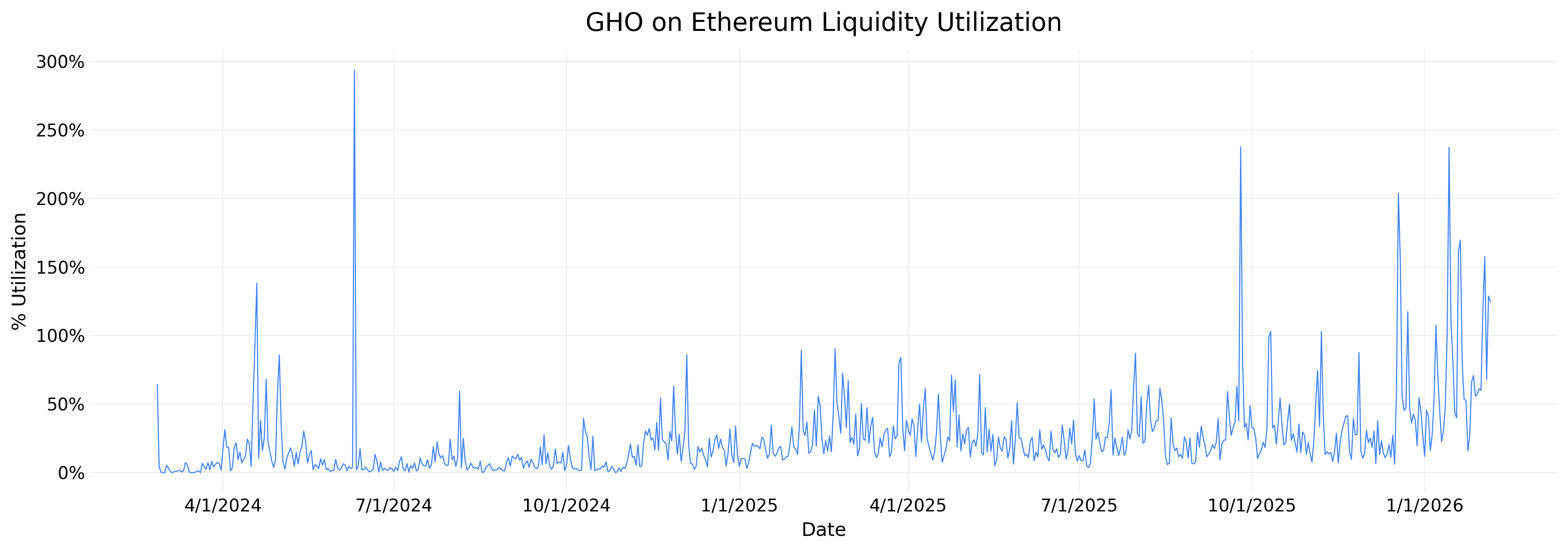 Higher ceiling eligibility (peg assurance milestone): Only consider moving beyond ~15m once GHO's peg support remains strong and credible at the system level. Here, the GSM matters: maintaining higher ceilings should be contingent on GSM reserve depth and usability remaining healthy (e.g., ample underlying reserves and an operational configuration that continues to keep GHO tightly bounded near $1 in practice). If GSM depth is materially reduced or governance actions (fees/buckets) meaningfully widen the effective redemption band, we recommend ratcheting the GHO ceiling back down until peg assurances strengthen.