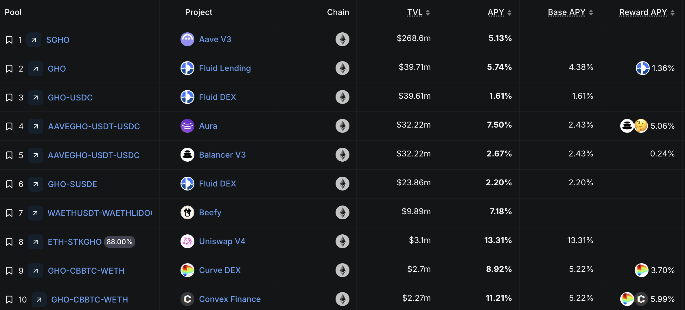 | Balancer | GHO/USDT/USDC | $30.58M |