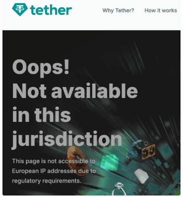 Tether appears to have already taken measures to restrict certain account functions, such as sign-ups, on Tether.to for those connecting from EU-based IP addresses.