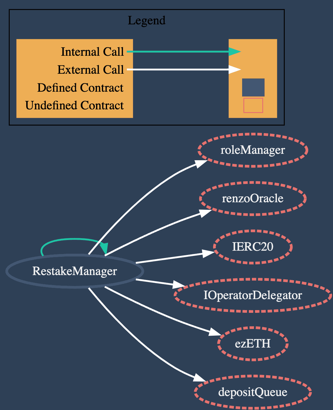 The access control mechanisms of Renzo’s smart contracts pivot around the RoleManager contract, with its source code available here. This contract involves a role-based access control scheme that divides privileged roles, and has a DEFAULT_ADMIN_ROLE responsible for assigning all other roles in the system, currently assigned to the 3/5 Renzo multisig wallet.