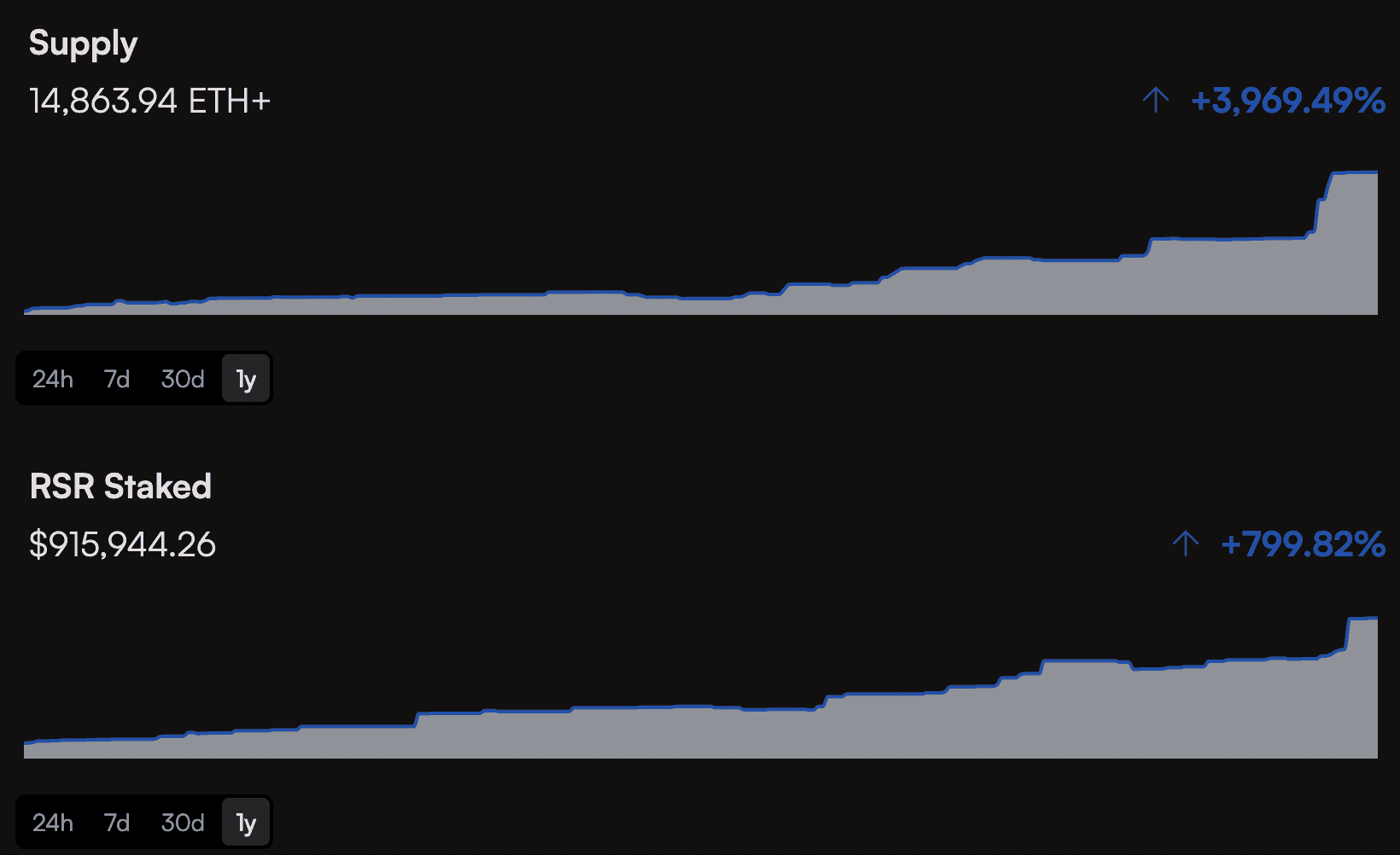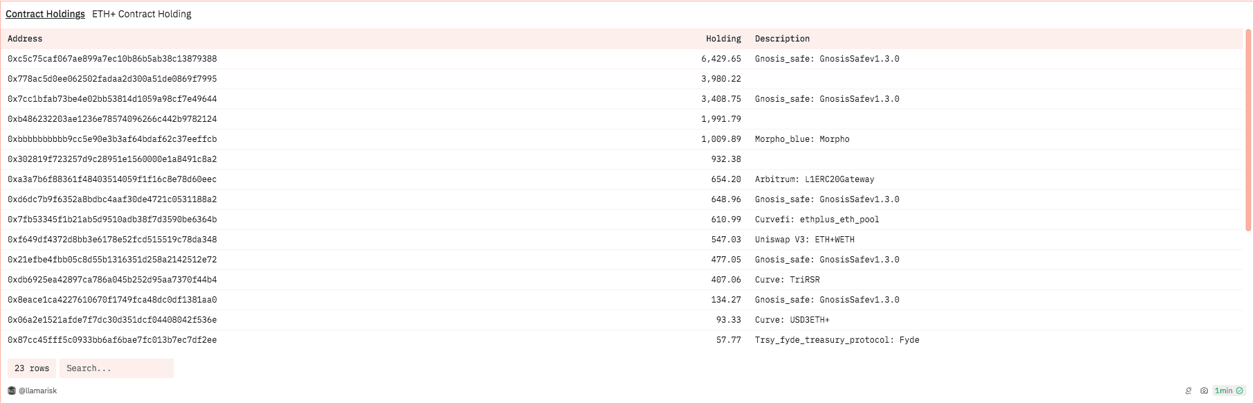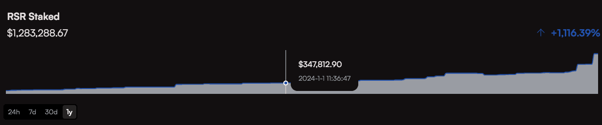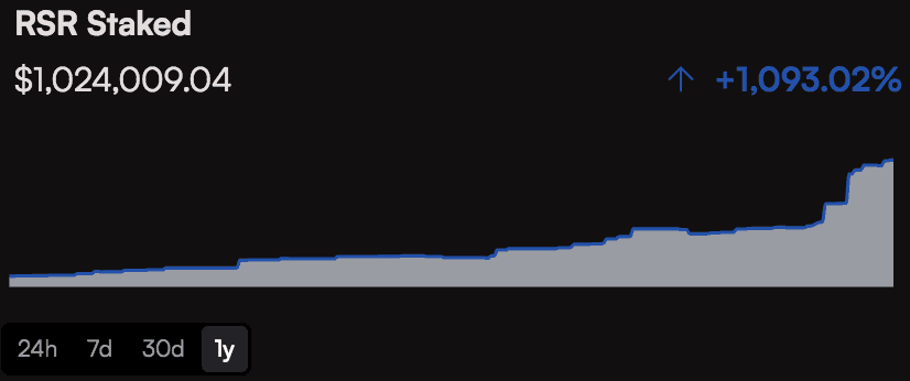 The mechanism for participating in governance is intrinsically linked to the staking of RSR on ETH+. An examination of staked RSR on ETH+ can provide insight into who has influence over ETH+ and how widely distributed is the governance power.