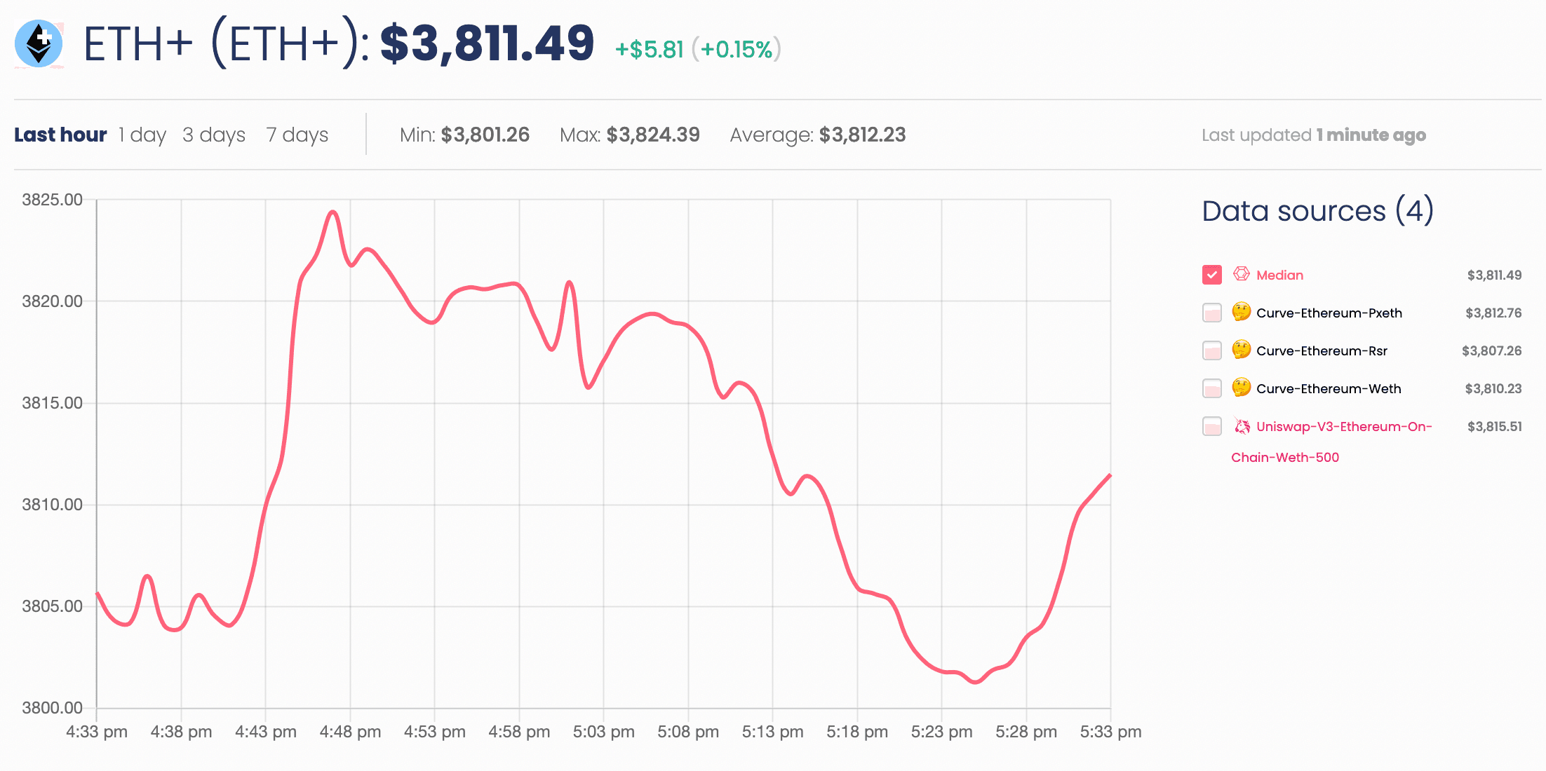 Both Lido and Rocket Pool are frontrunners in the liquid staking sector with a long history and substantial development effort to mitigate security and centralization risks. The introduction of sfrxETH introduces a more aggressive yield strategy that exposes ETH+ to an asset that operates in a much more centralized fashion than the original basket. However, it has operated without incident since its inception in late-2022. As the asset does not have a Chainlink pricefeed, its oracle relies on a Curve pool EMA, which requires active monitoring in case of liquidity/volume shifts or technical bugs in the specific pool.