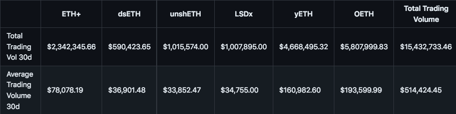 Frax Staked ETH (sfrxETH): sfrxETH is the yield-bearing version of ETH deposited in frxETH. Frax divides its LSD into frxETH and sfrxETH- the former to maintain peg with ETH for use in DEX and its Automated Market Operations (AMO); the latter to be a value accruing collateral token. sfrxETH has historically enjoyed yields in excess of typical Ethereum staking yields thanks to the substantial protocol-owned frxETH liquidity that forgoes its share of the yield to sfrxETH tokenholders.
