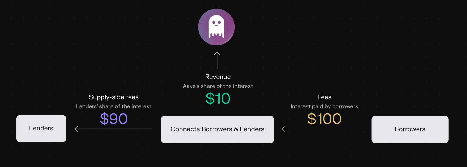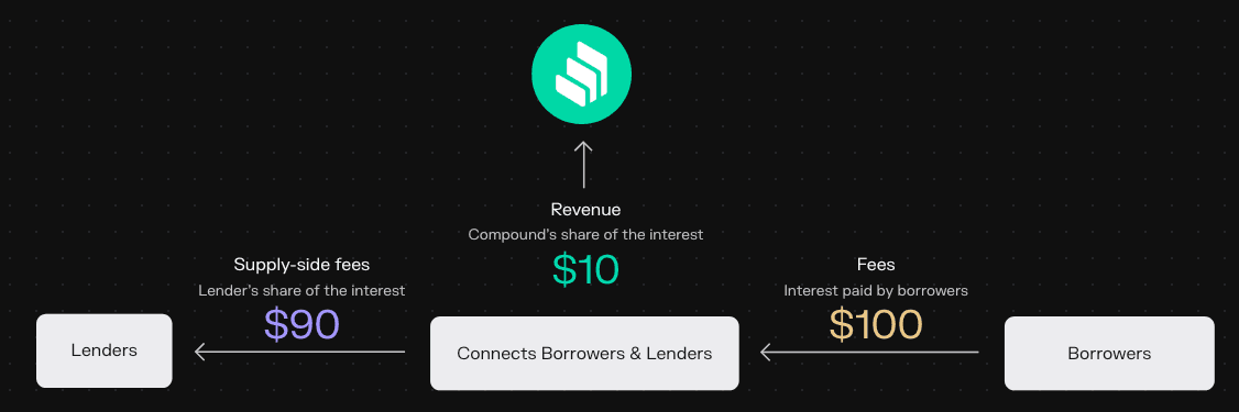 According to Token Terminal, Compound takes a 10% share of revenue earned from borrowers and passes on 90% to lenders.