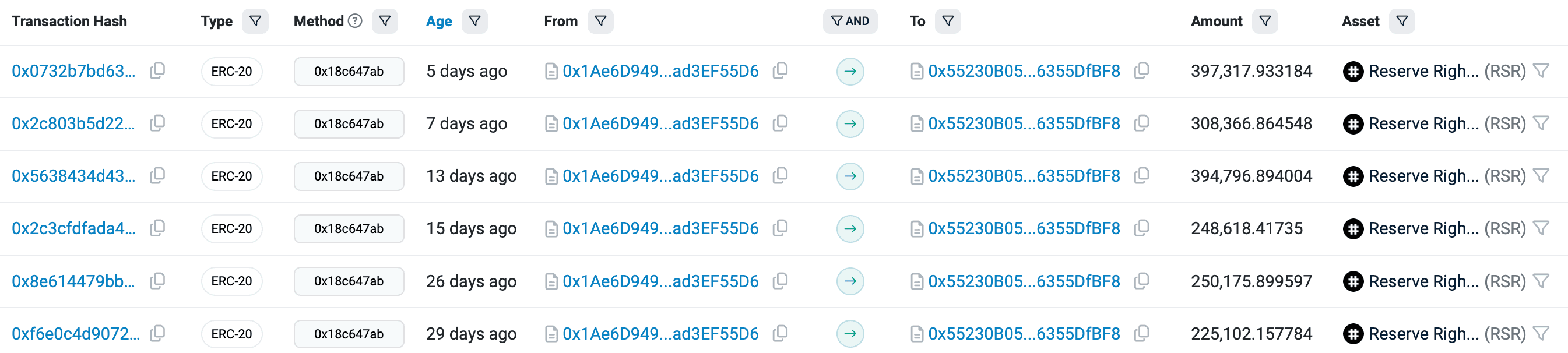 To date, six transactions have distributed a cumulative amount of over 1.5 million RSR tokens as revenue: