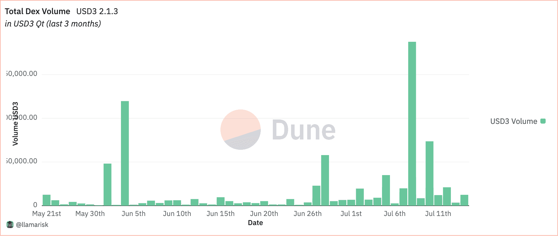 Additionally, the price of USD3 has remained very stable at $1 since launch, with a slight appreciation from revenue distribution events (auctions).