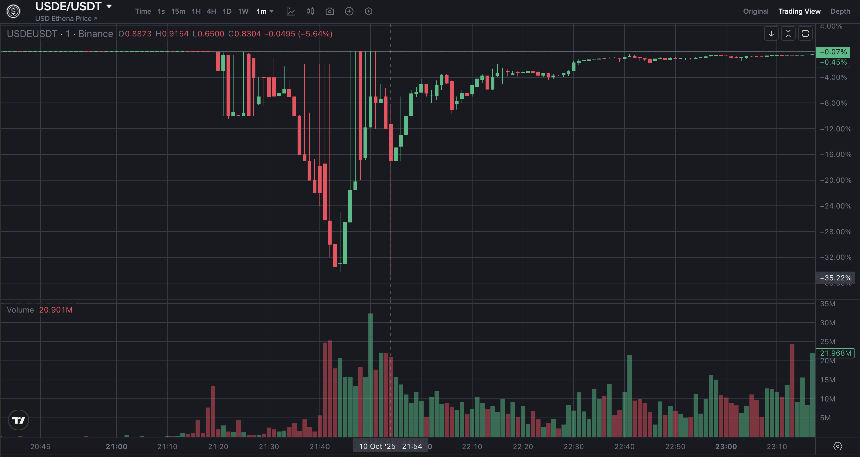 Altcoins suffer deep losses: SOL –40%, ATOM almost zero on Binance, Ethena’s USDe briefly quoted at $0.62