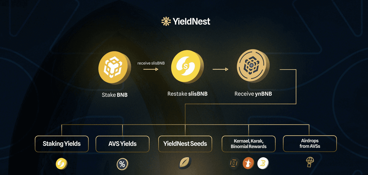 YieldNest is a decentralized liquid restaking protocol that generates yield by integrating restaking applications and DeFi strategies. Through MAX LRTs and LRTs, these composable and liquid tokens simplify yield management by consolidating multiple restaking and DeFi protocols into a single, user-friendly asset.